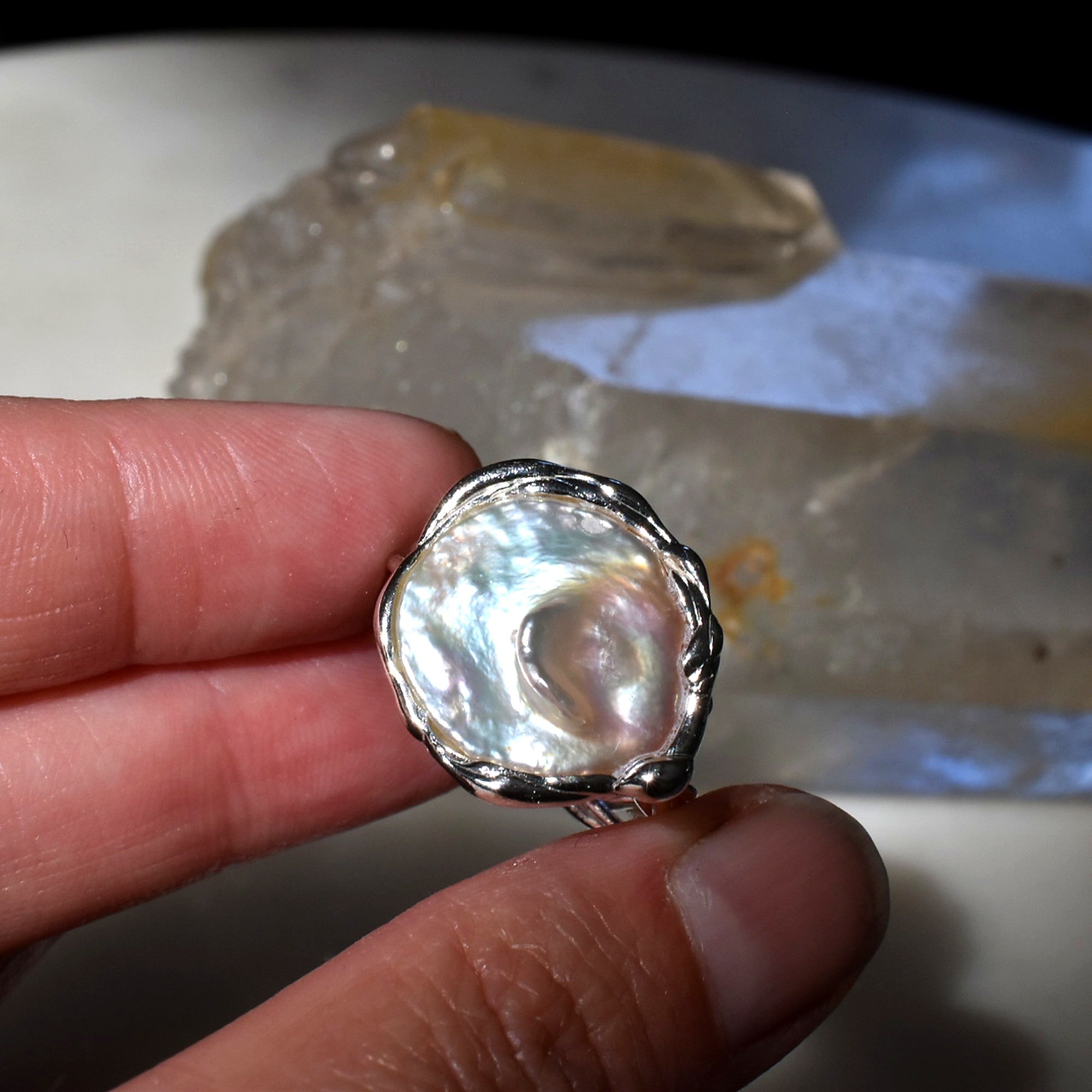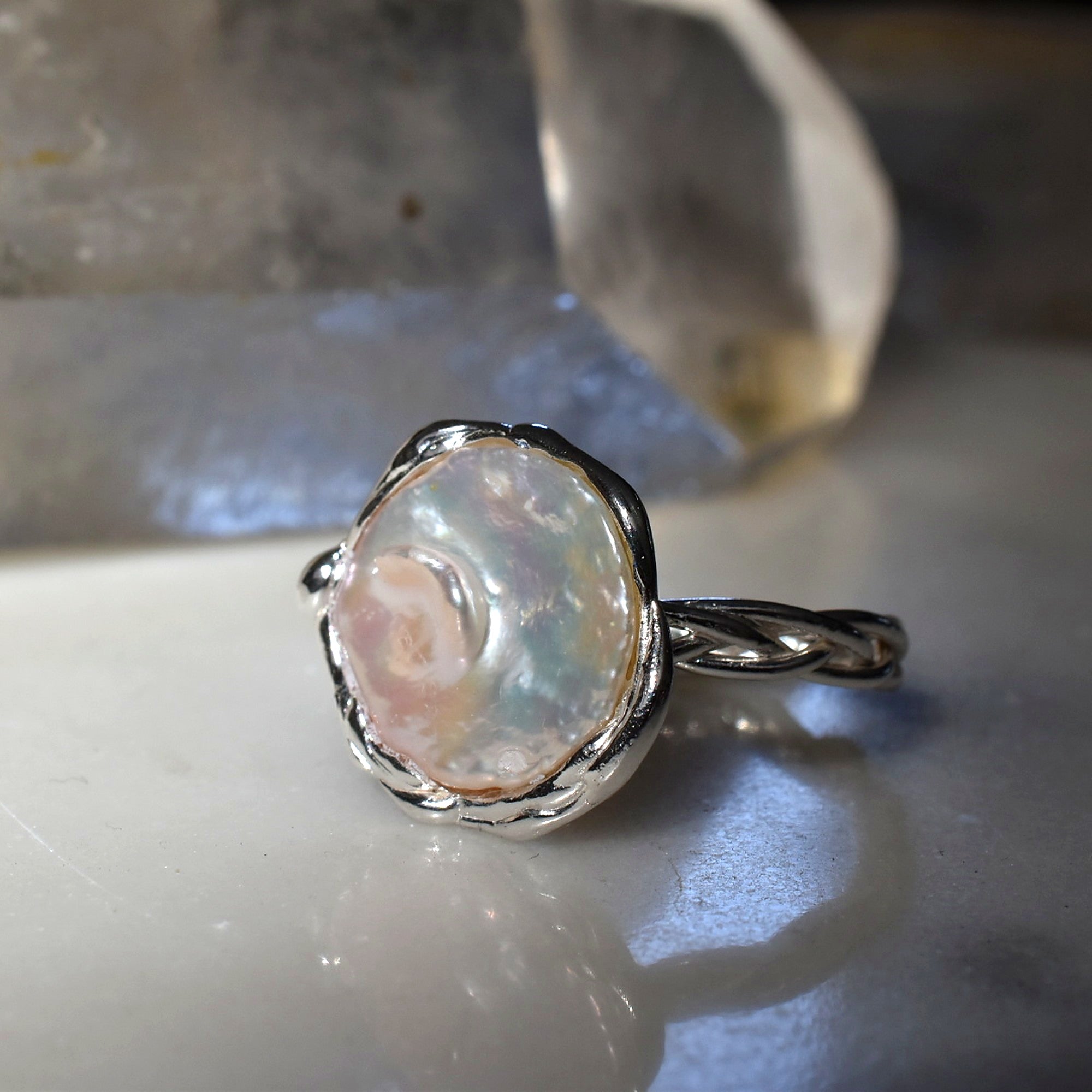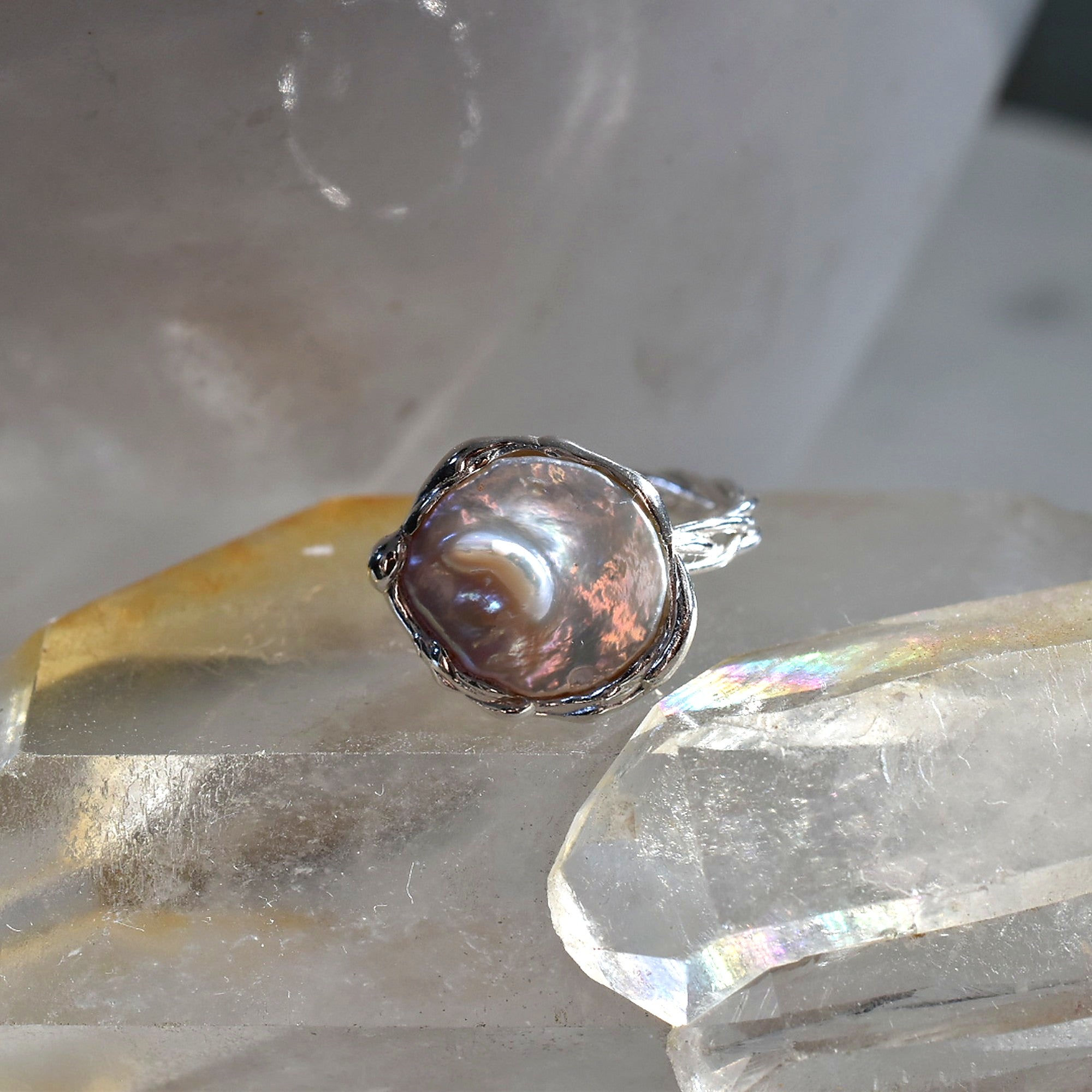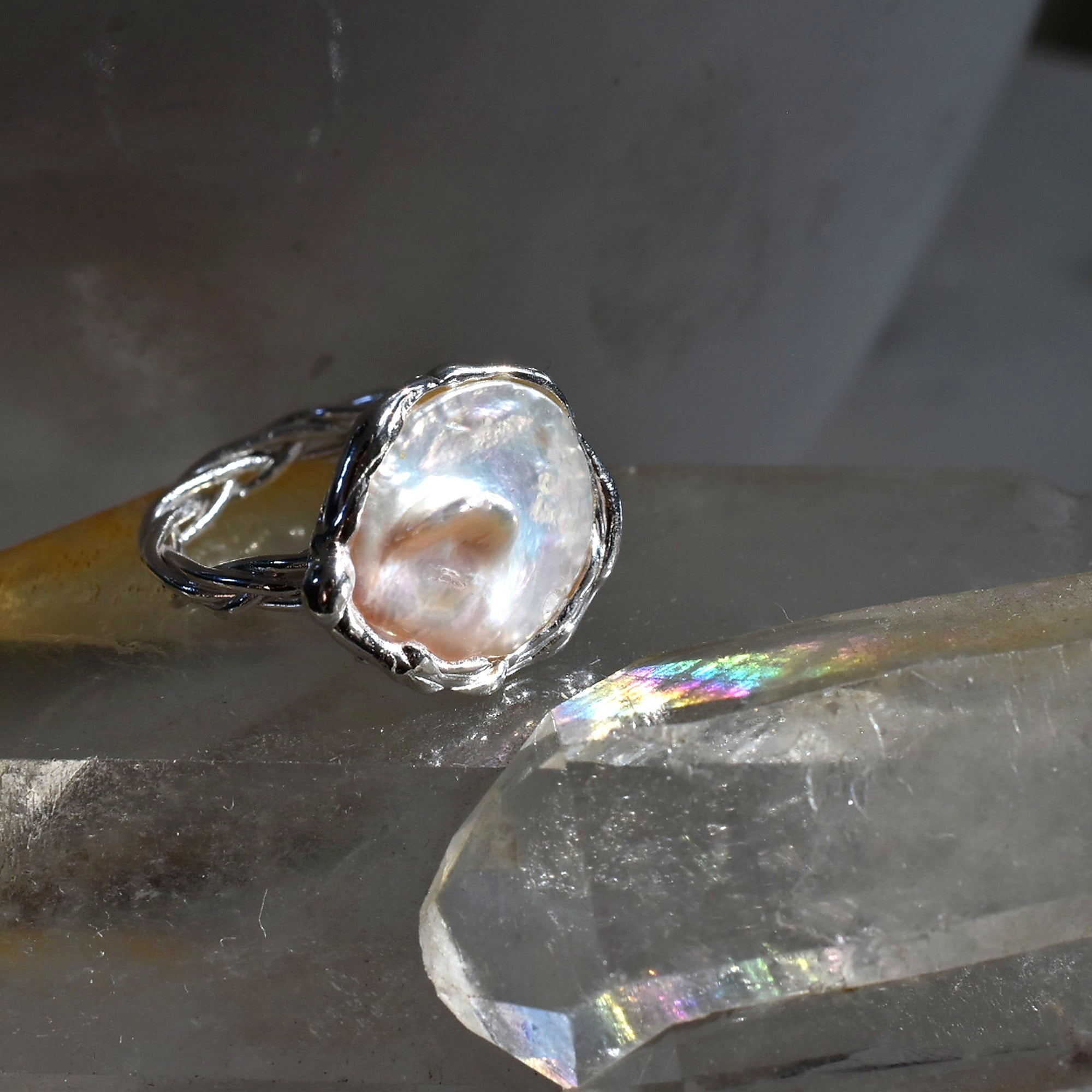 Cada perla barroca es única, formada lentamente en el interior del océano. Su forma orgánica y su brillo nacarado hacen que ningún anillo sea igual a otro.